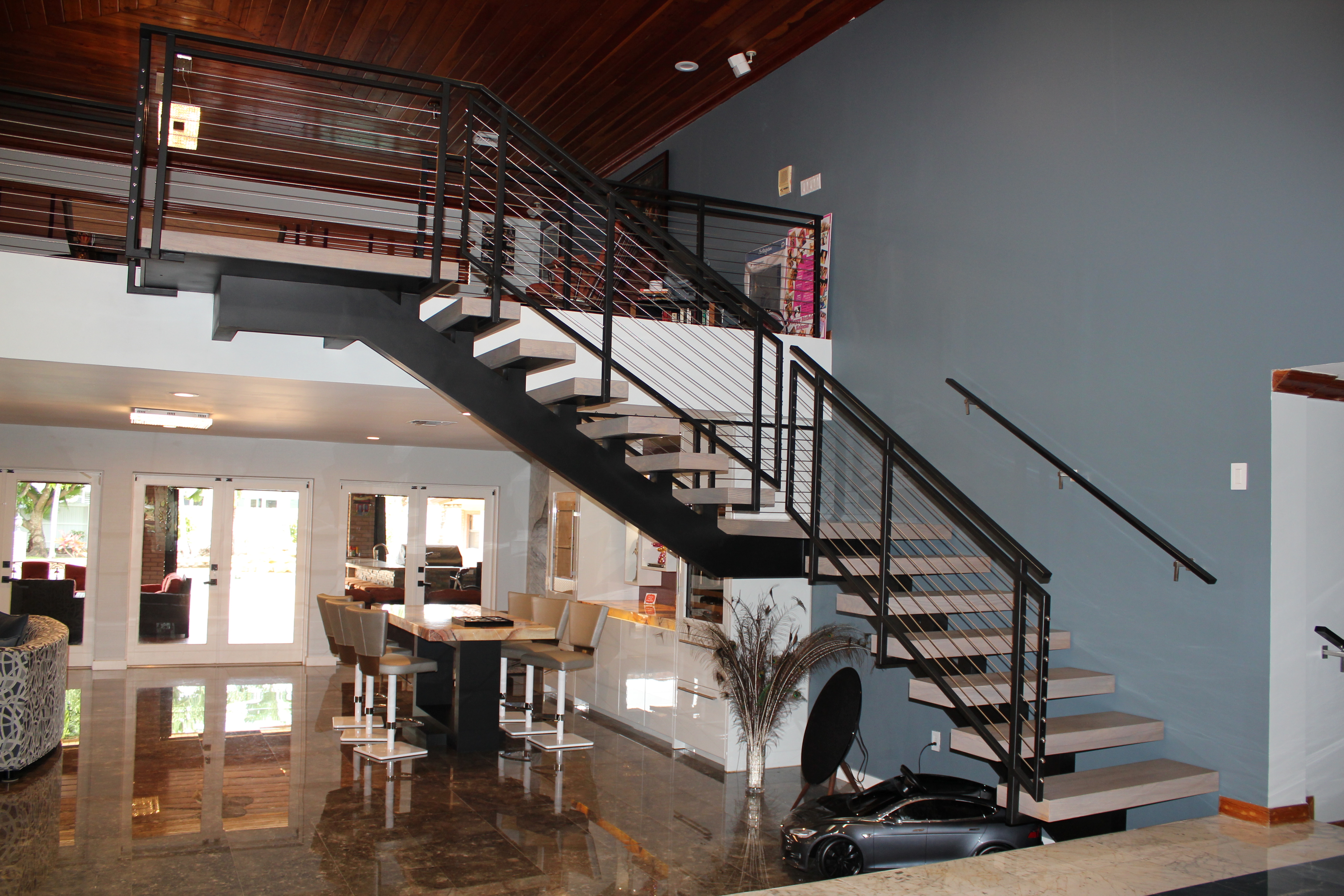 Update entryway of large home in Kendall, including a new custom staircase, tile, wine bar, and more.