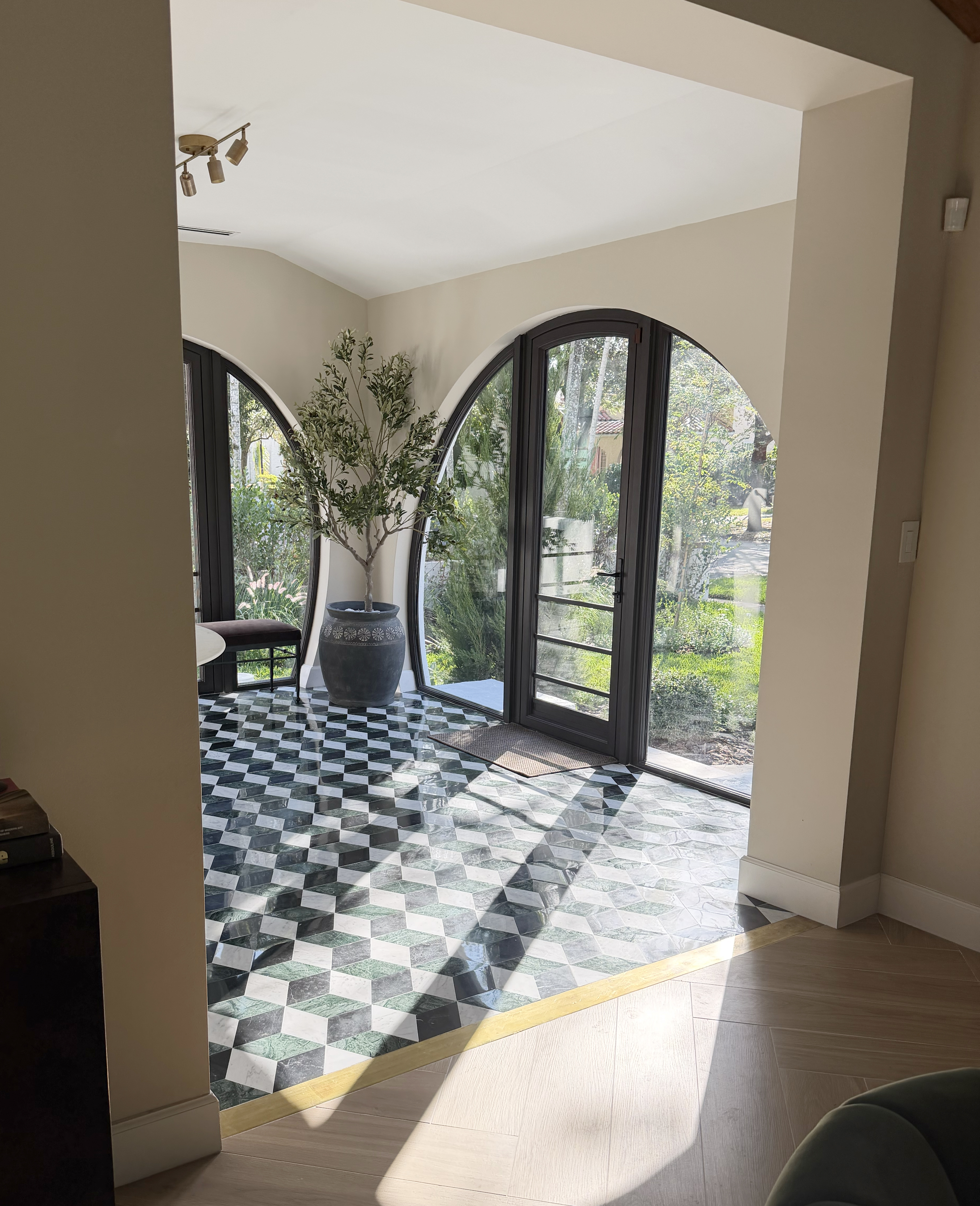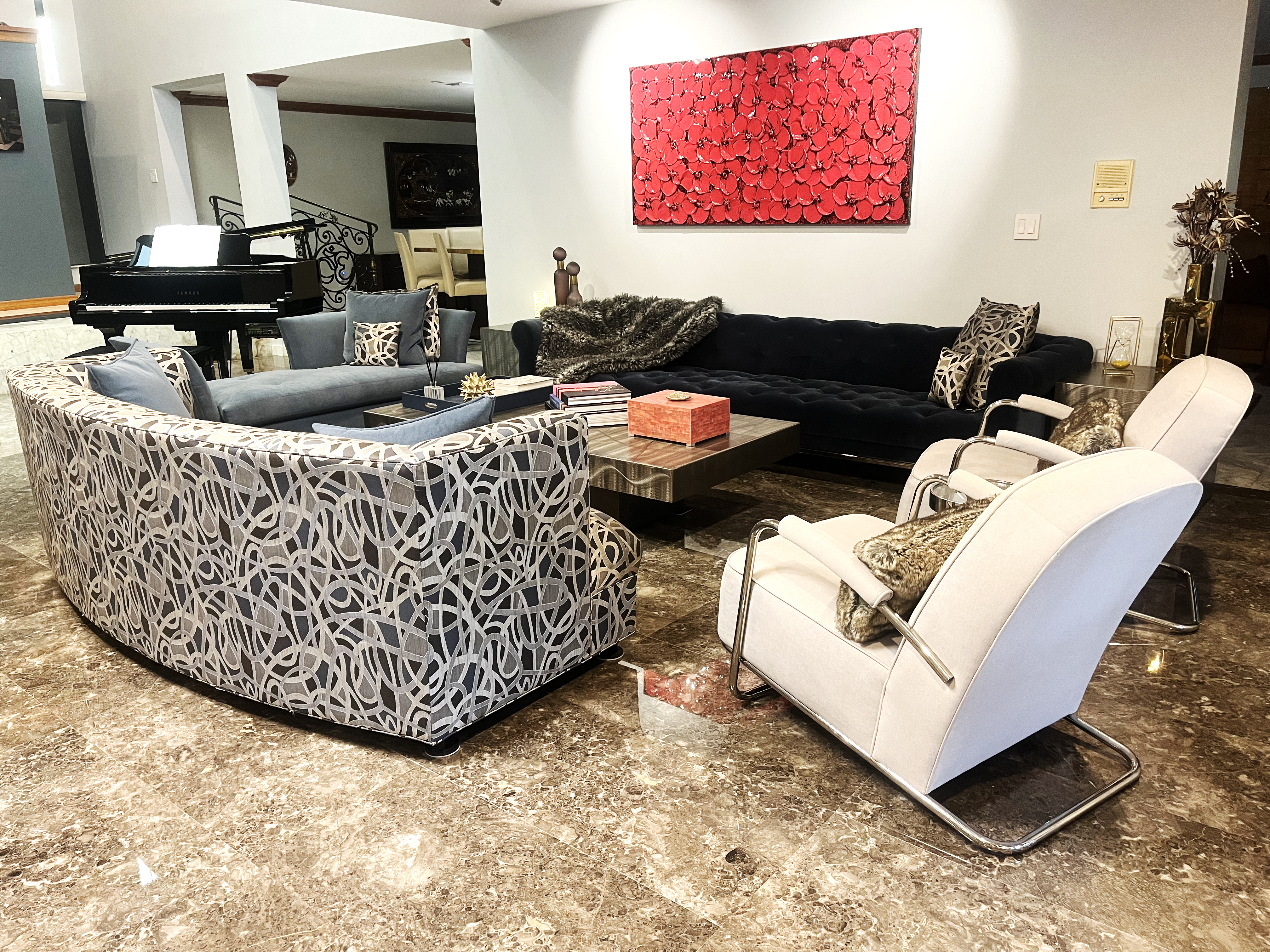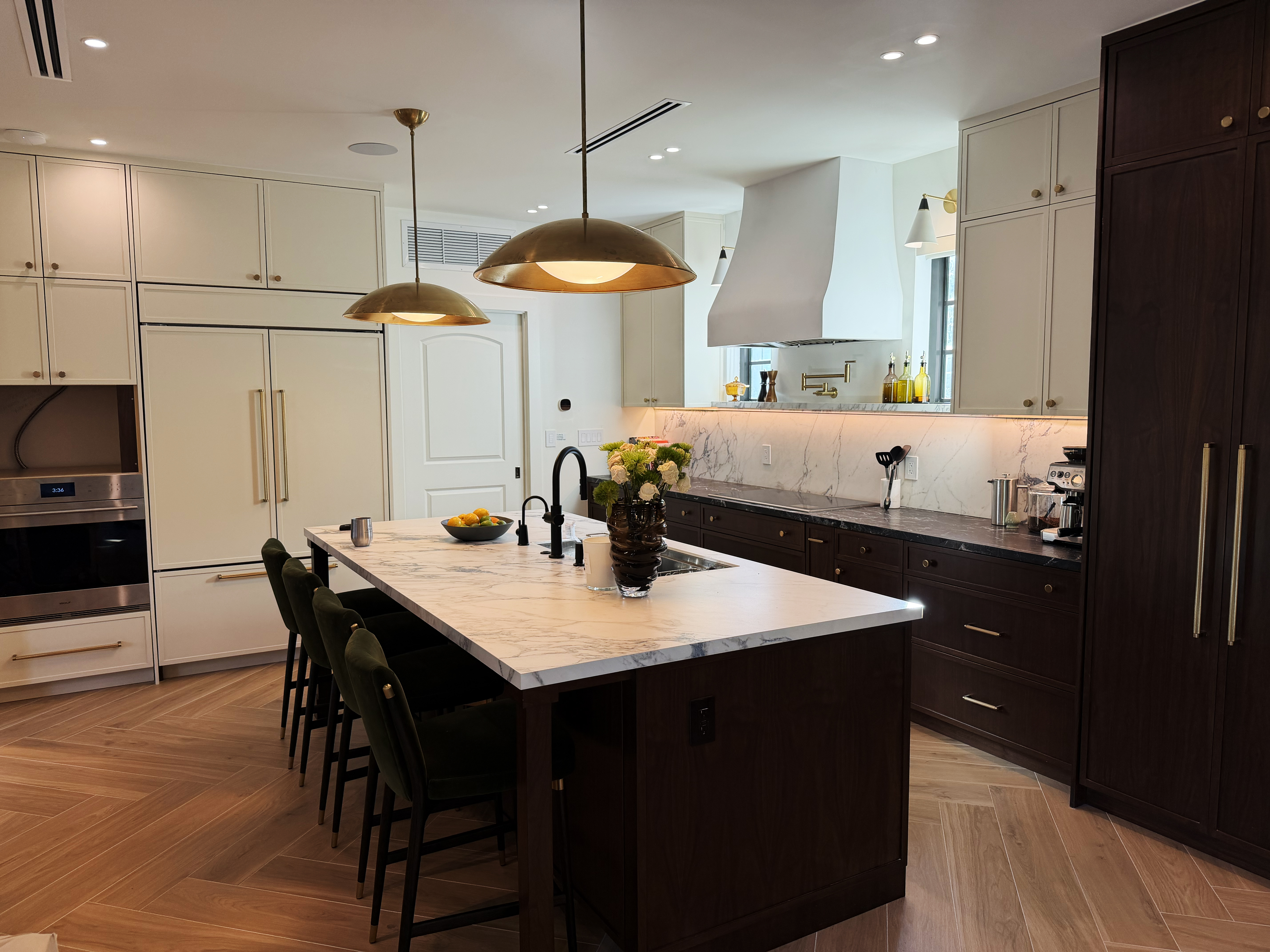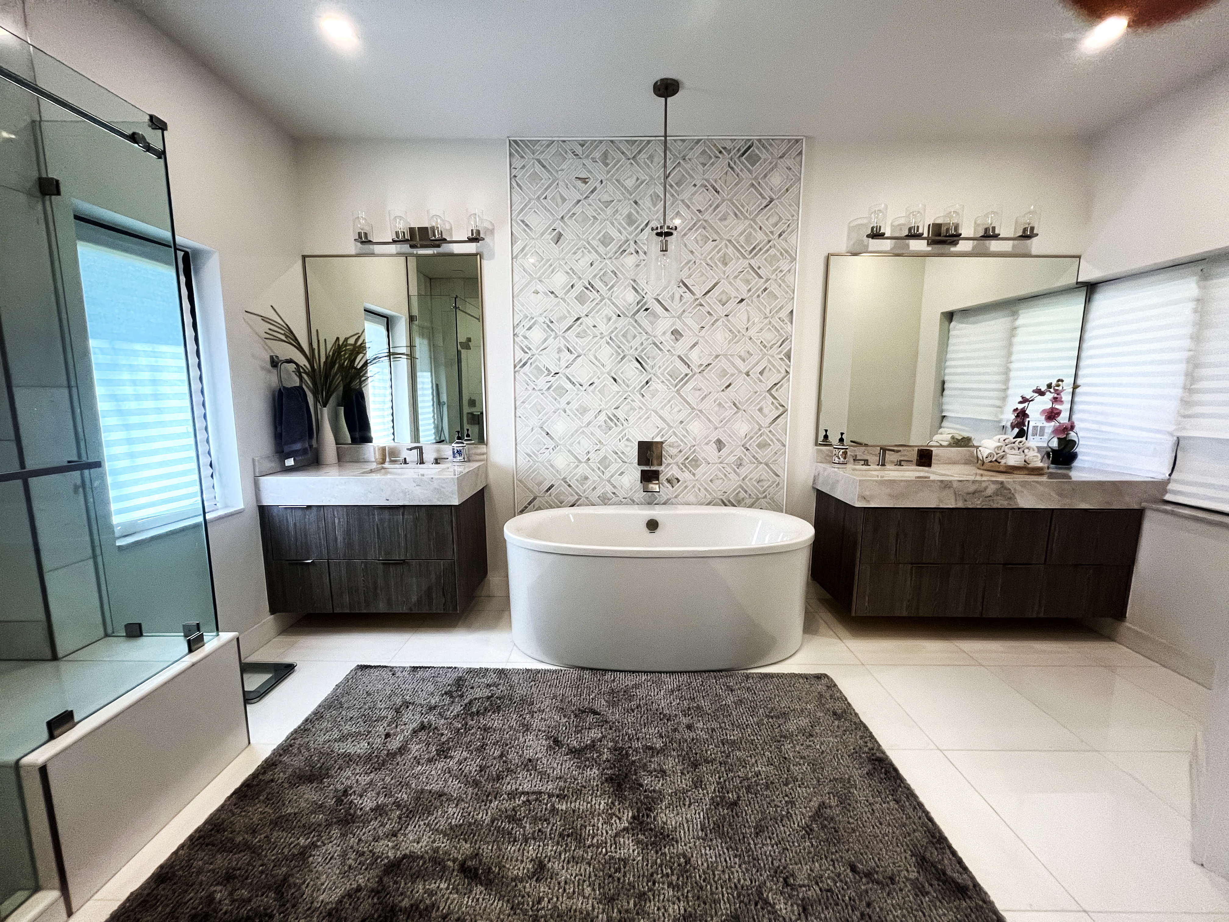 We designed and renovated this house with all marble bathrooms, a brand-new bar, and an updated entryway.