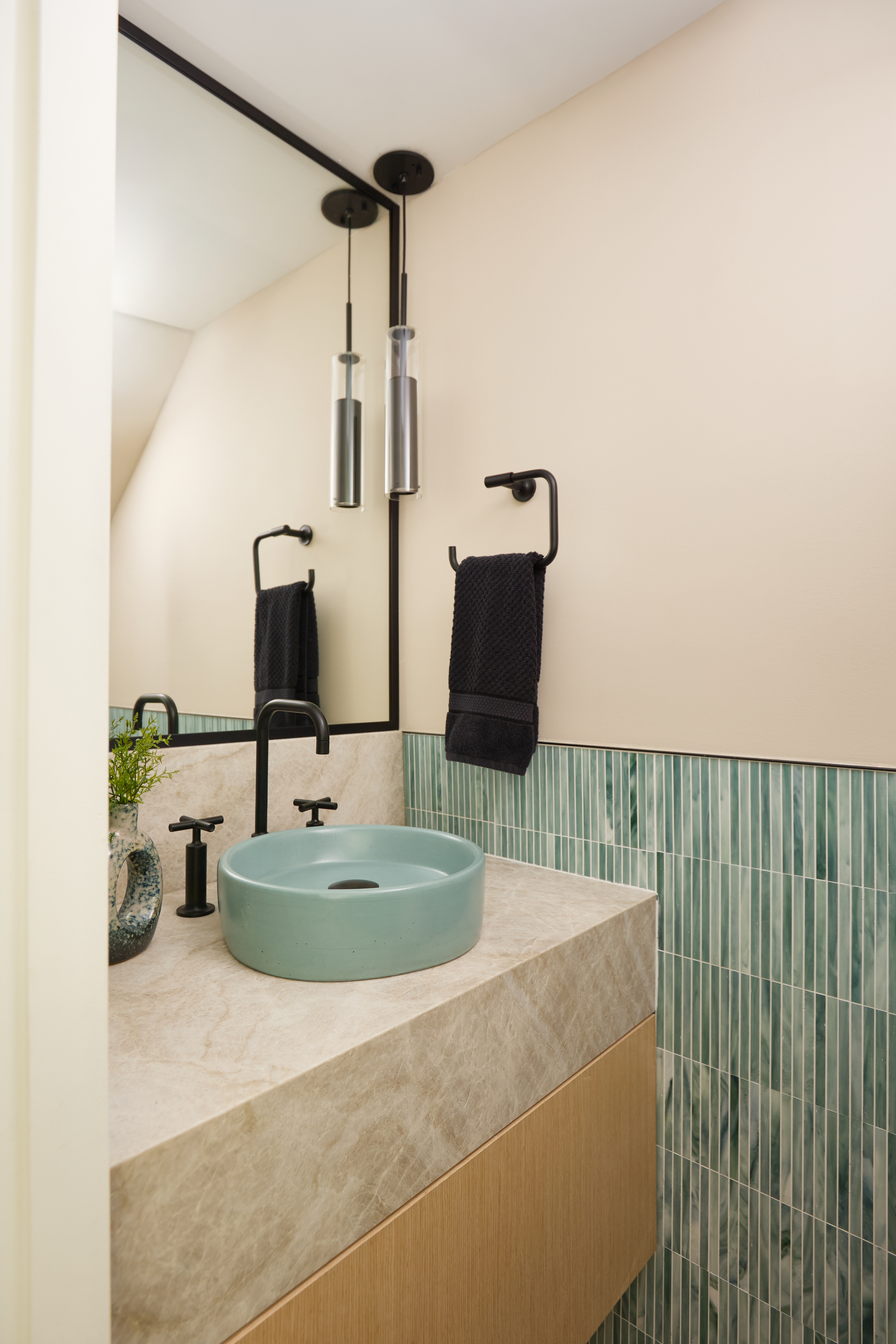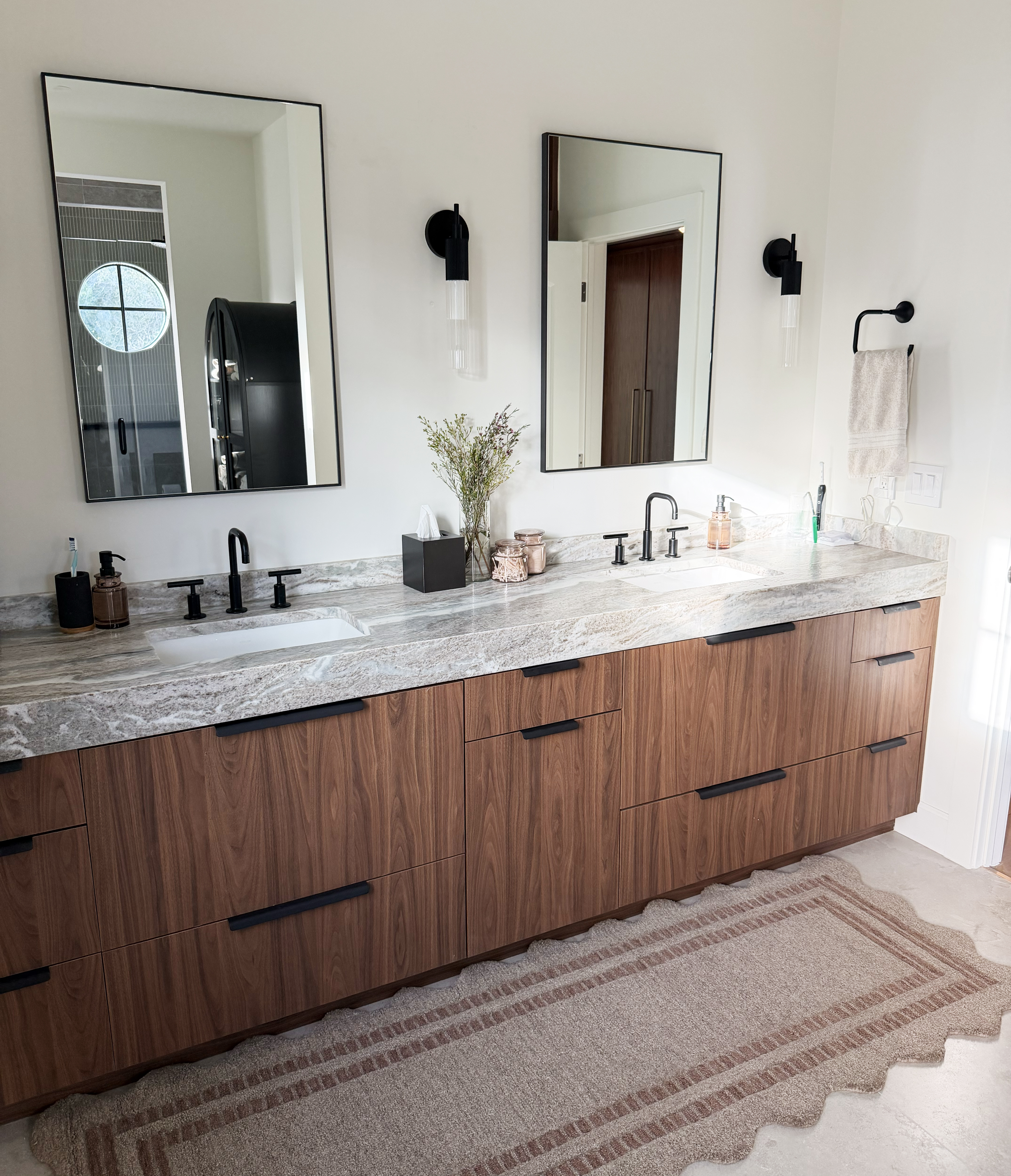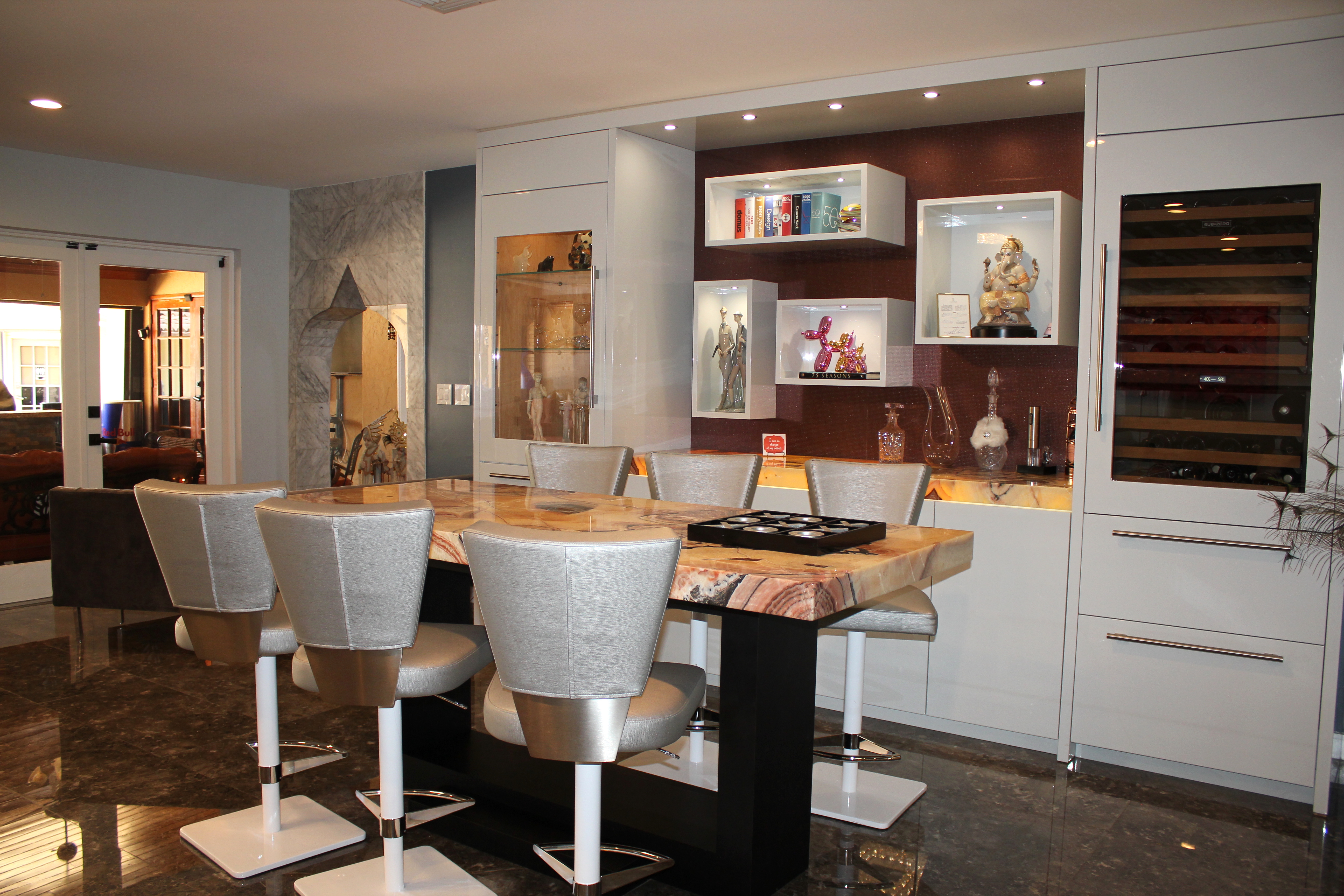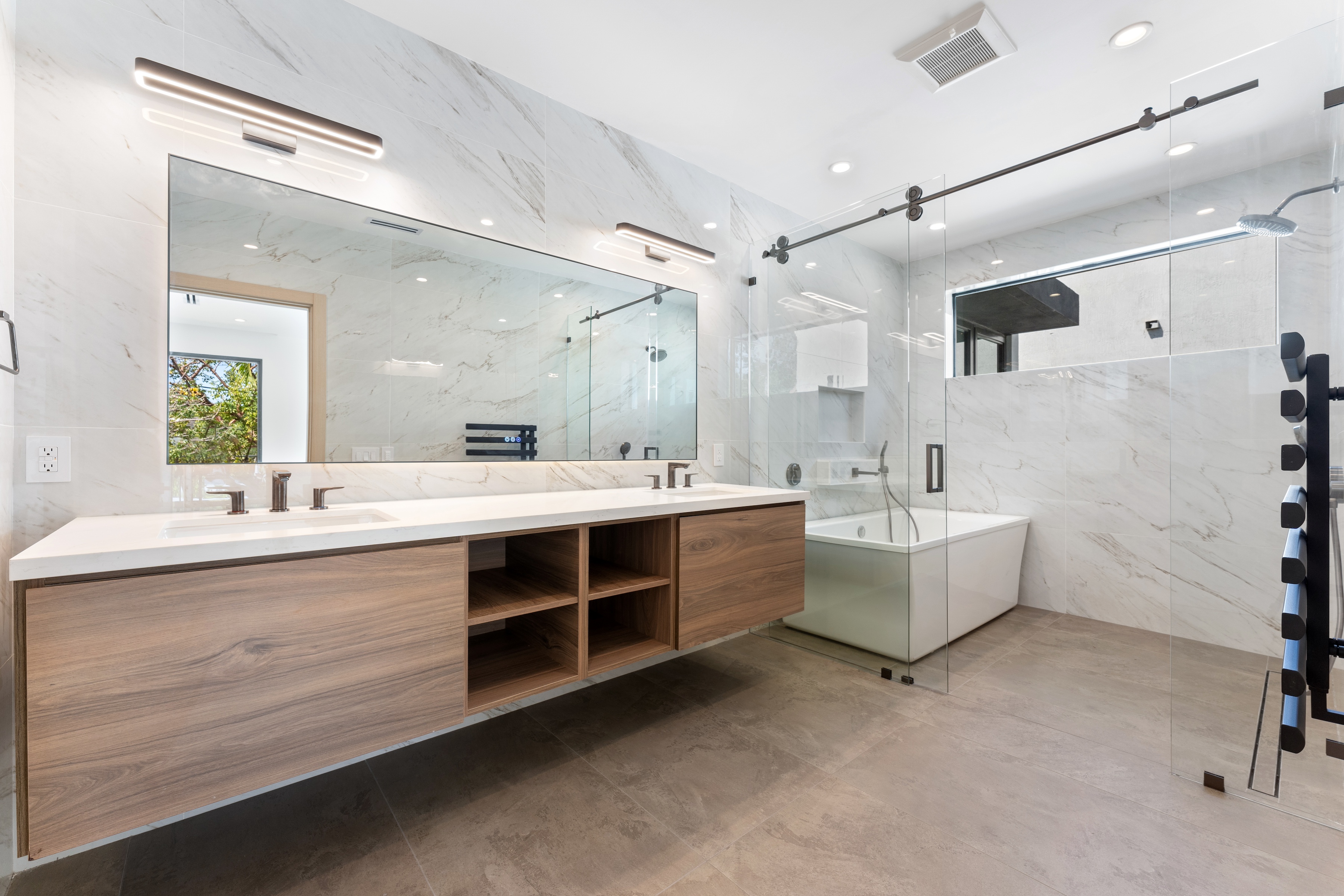 We designed and renovated this house with all marble bathrooms, a brand-new bar, and an updated entryway.