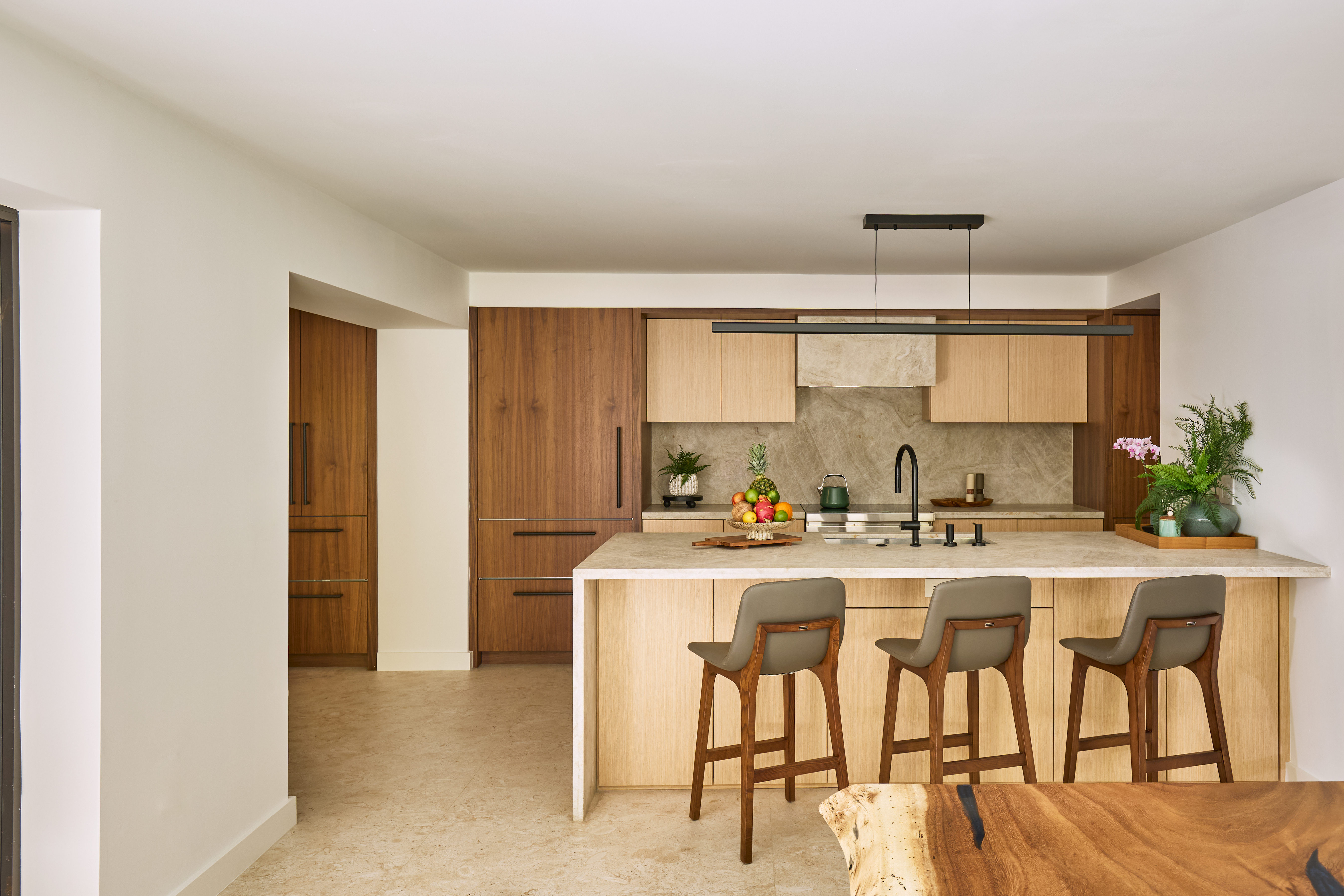 Luxury townhouse in Coconut Grove showcasing natural materials, warm finishes, and luxury furnishings. This project allowed us to turn a dated and difficult home into a work of art.